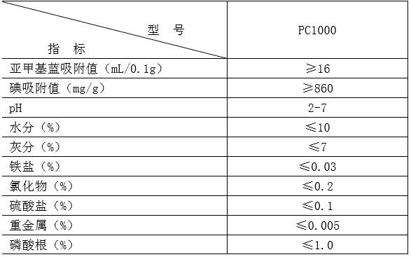 PC1000型粉狀活性炭是以優質木屑為原料,采用磷酸活化法,經過預浸漬、低溫炭化、高溫活化、回收、漂洗、烘干、磨粉等工序精制而成。通過孔徑定向調控和表面極性改造技術,開發了高純度、高中孔率和濾速快的PC1000型粉狀活性炭。